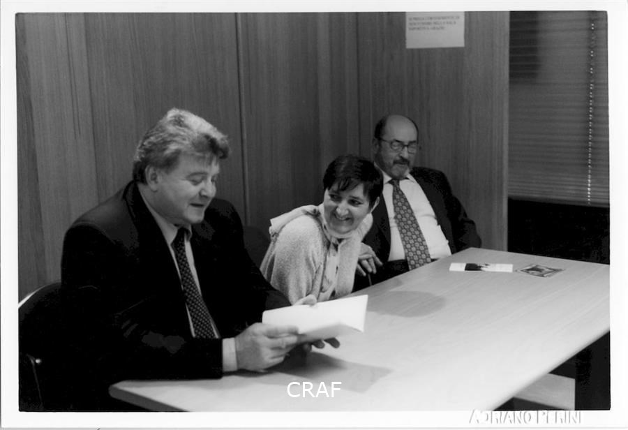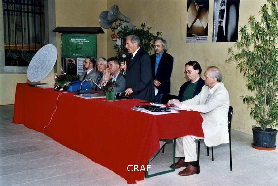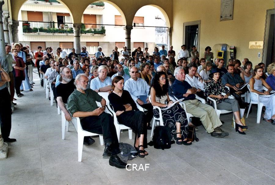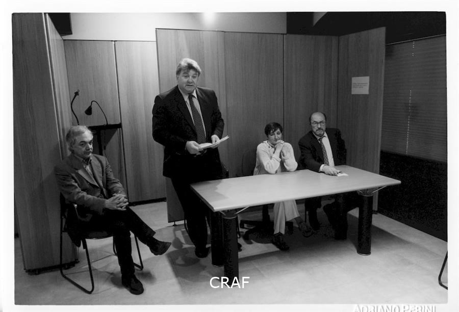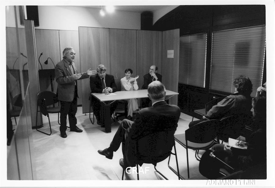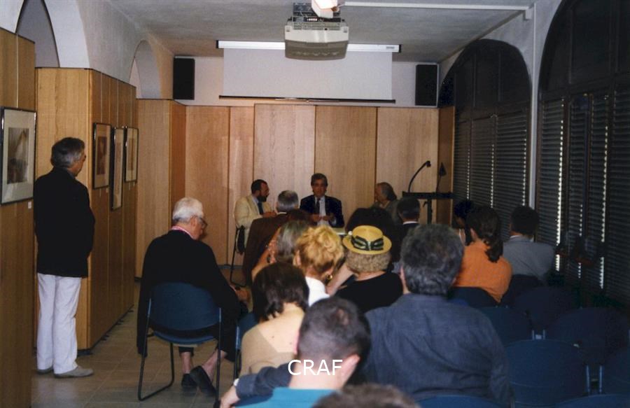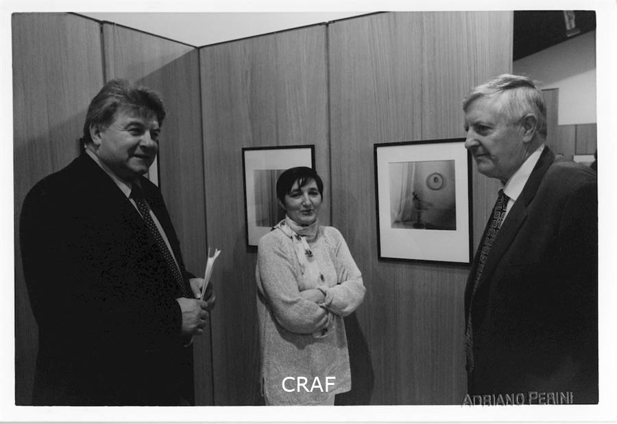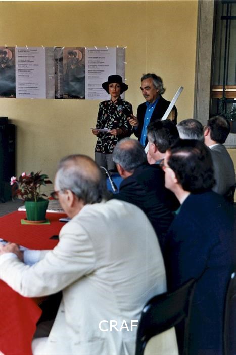 A Villa Ciani, nella Galleria John Phillips, inaugurazione della mostra Voci e Immagini nell'ambito di Spilimbergo Fotografia '99. Sabrina Zannier, Gianfranco Ellero, Matteo Bortuzzo e Charles Henri Favrod tra il pubblico.