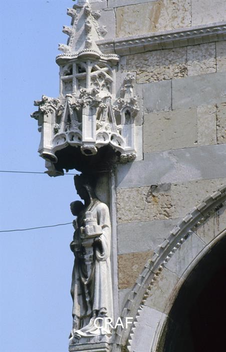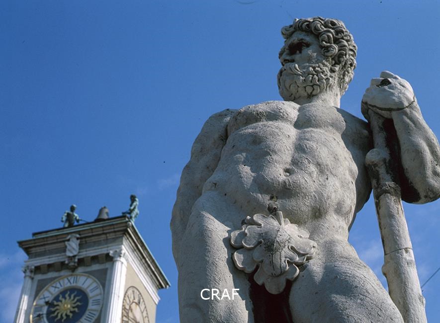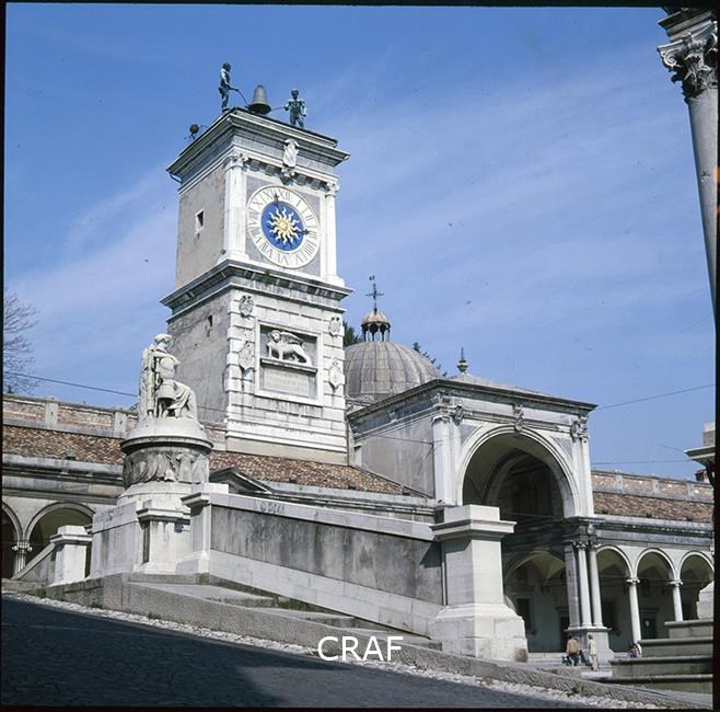 Dettaglio prospettico della statua di Caco a sinistra e della Torre...