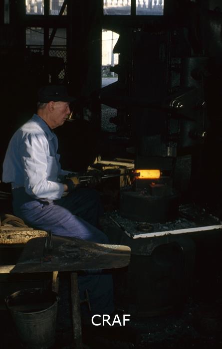Un fabbro lavora con la pressa.