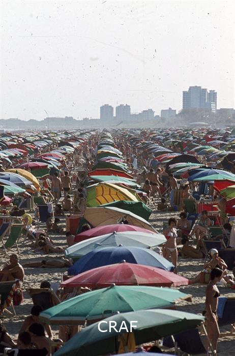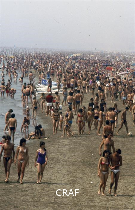 Veduta della spiaggia affollata.