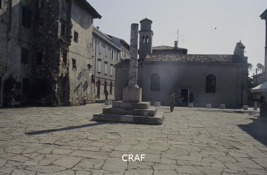 Veduta del campo antistante il Battistero con la chiesa di San Rocco sullo...