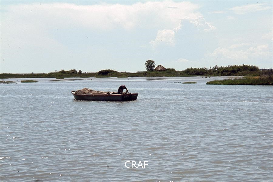 Pescatore in barca nella laguna di Grado.