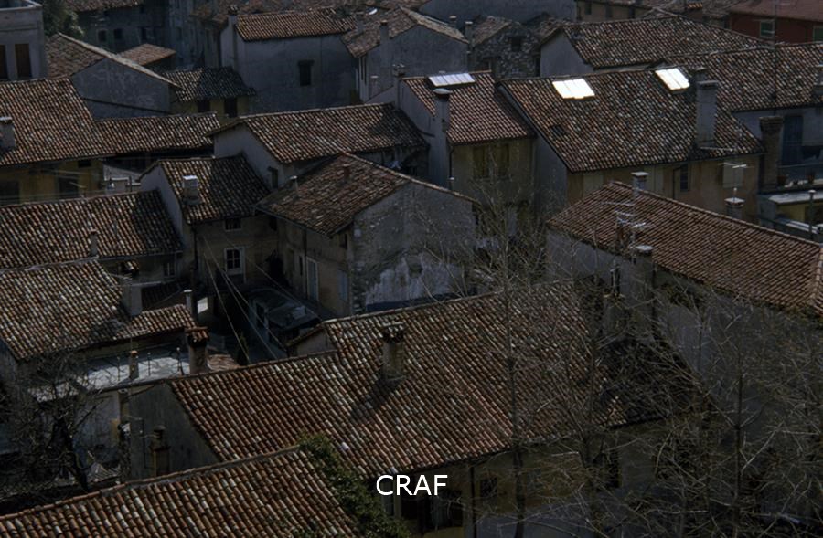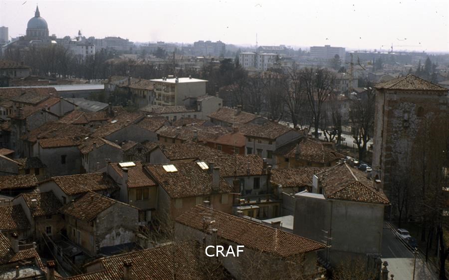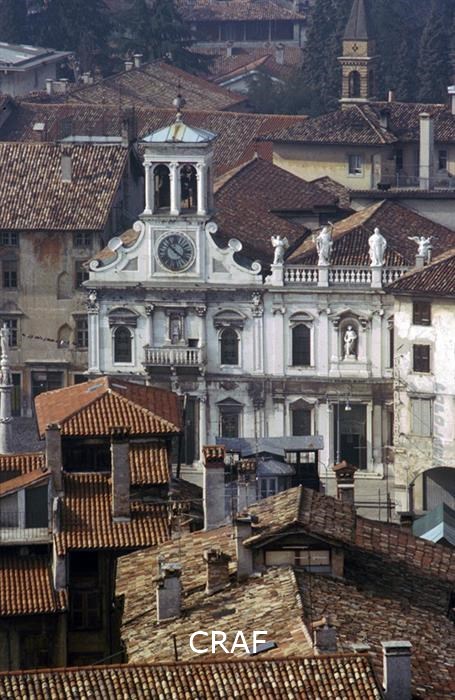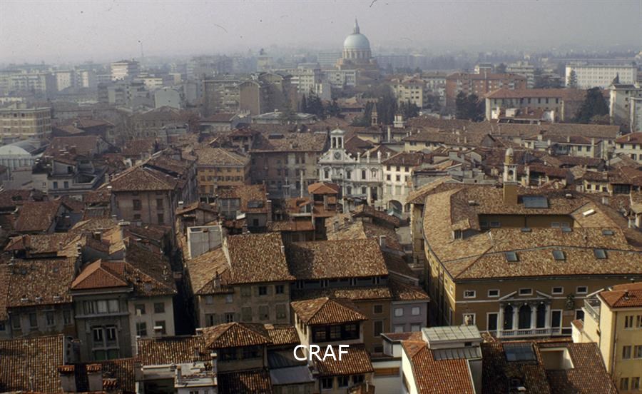 Veduta dei tetti del centro storico con la chiesa del Redentore sullo sfondo.