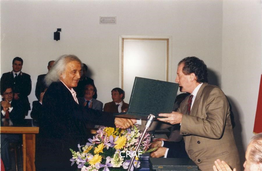 Mario Giacomelli riveve il premio Friuli Venezia Giulia Fotografia '90.