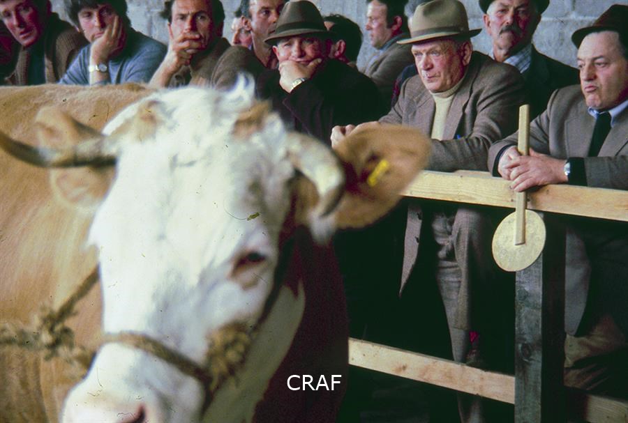 Allevatori osservano una mucca.