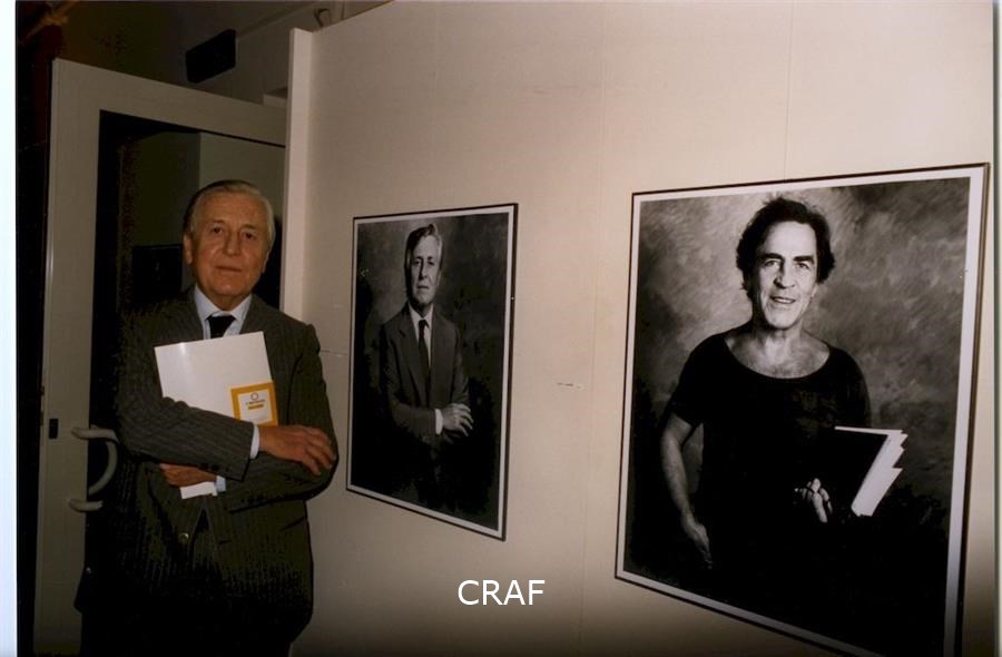 Inaugurazione della mostra Personaggi e interpreti nel tempo di Enzo Nocera presso Palazzo Lepido. Lanfranco Colombo davanti al suo ritratto.