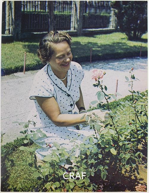 Ritratto della moglie Milena china tra le rose nel Giardino Giovanni Pascoli, a...