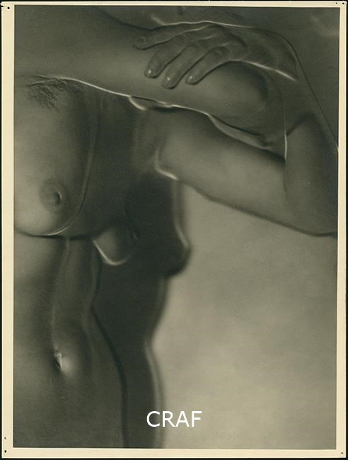 A sinistra il busto nudo di una donna con il volto nascosto tra le braccia.