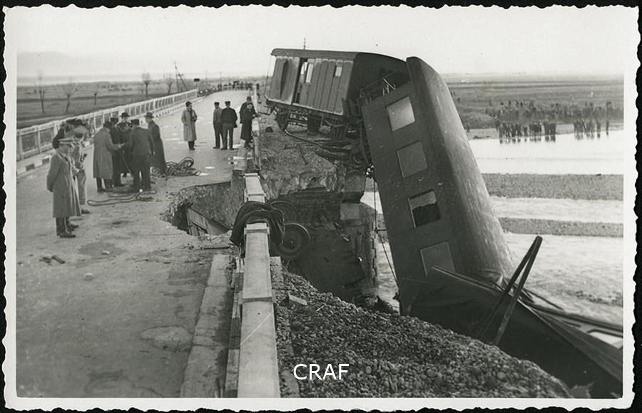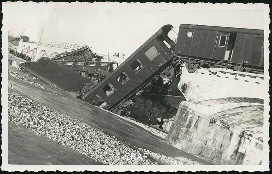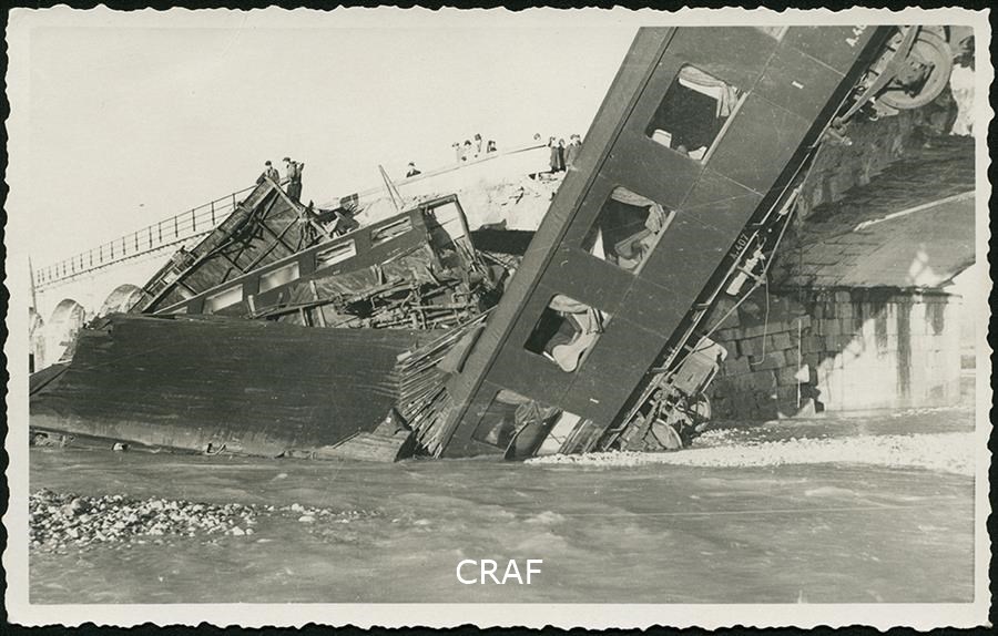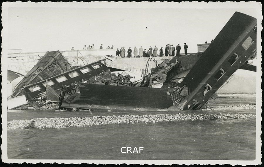 Veduta del disastro ferroviario sul ponte del torrente Torre