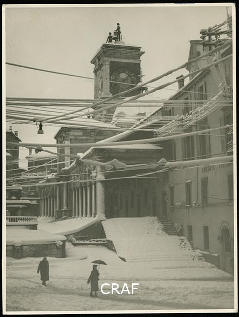 Scorcio della loggia di San Giovanni in piazza Libertà sotto la neve.