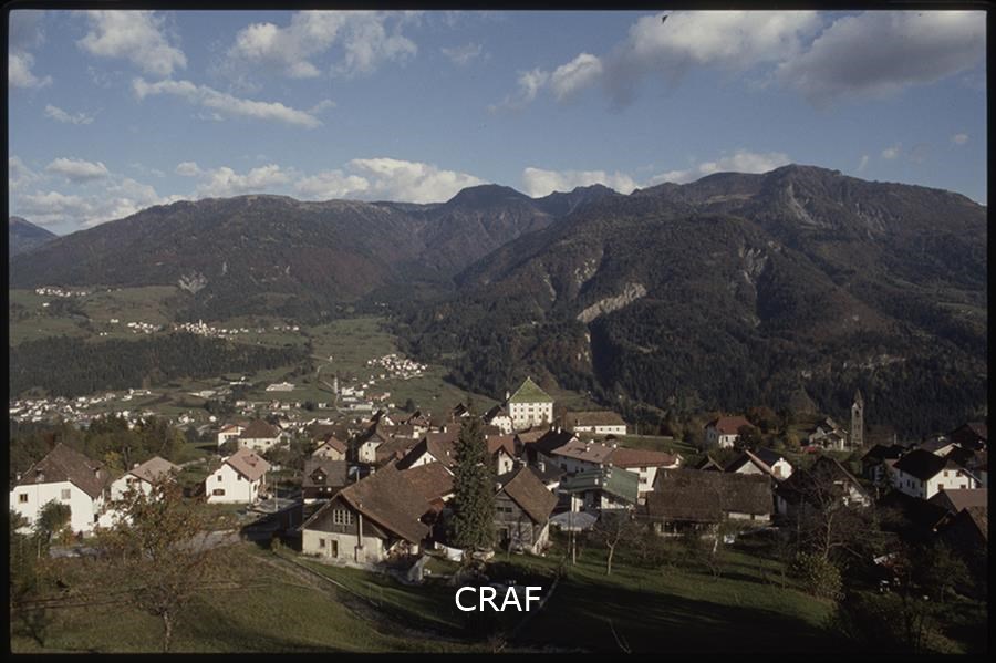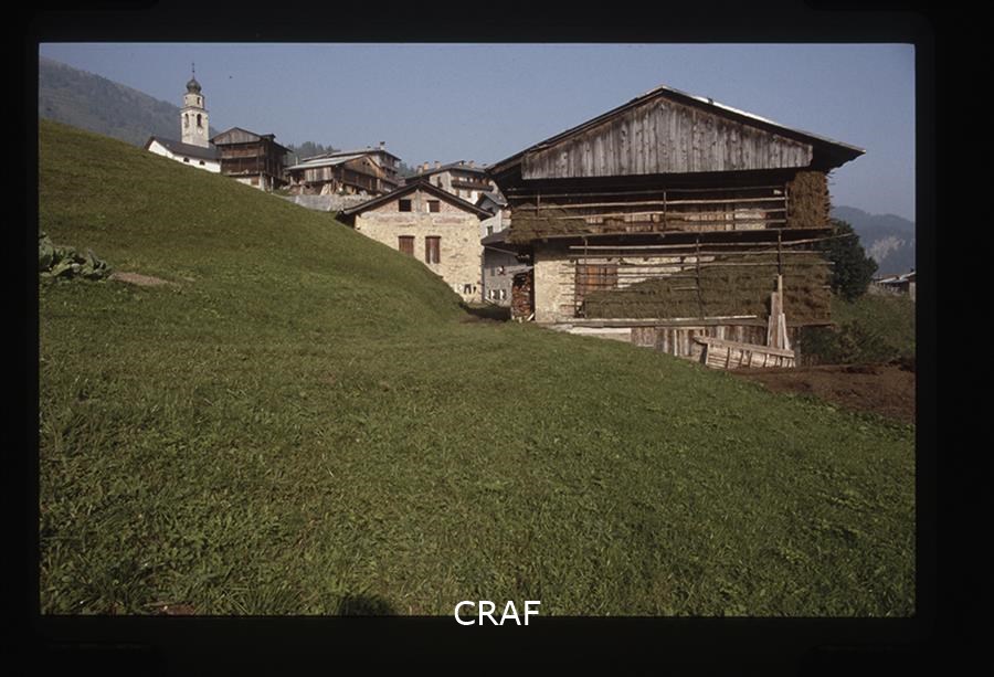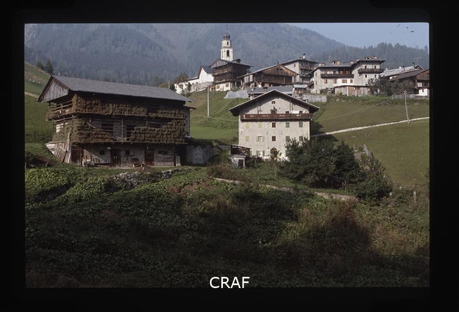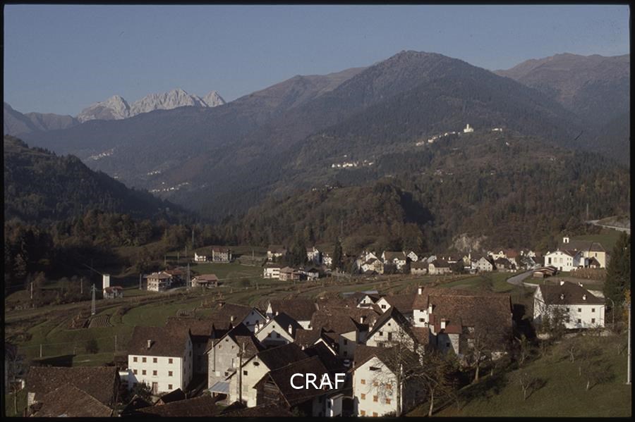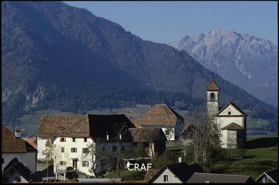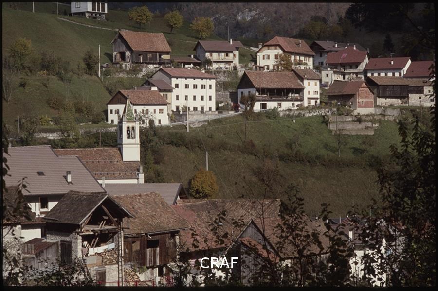 Veduta delle case di Clavais con la chiesa di San Lorenzo Martire a destra