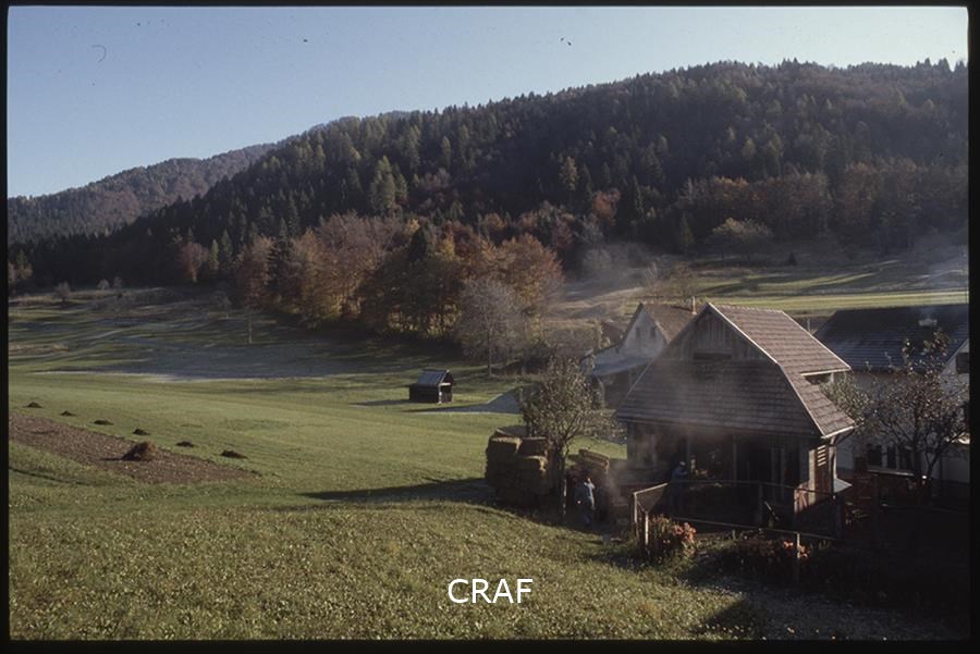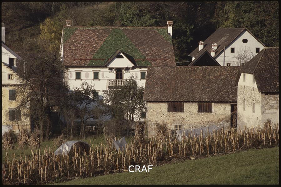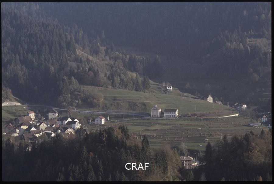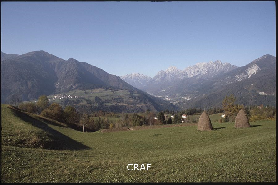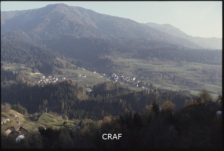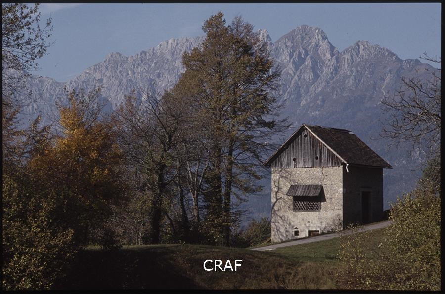 Veduta delle case di Clavais con la chiesa di San Lorenzo Martire a destra