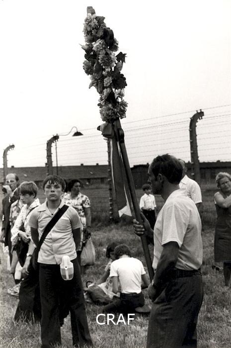 Fedeli in sosta presso il Campo di concentramento di Brzezinka