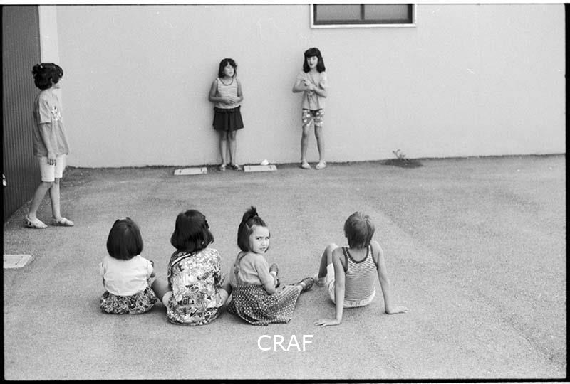 Un gruppo di bambine e un bambino giocano nel cortile del condominio "Le...