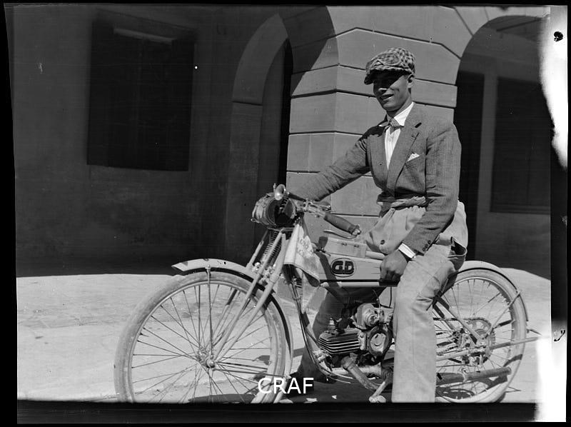 Ritratto di Leonida Merlo al II Circuito motociclistico di Valvasone