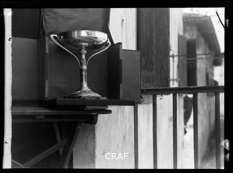 Ripresa del trofeo, identificabile probabilmente con la Coppa Veedol, in palio...