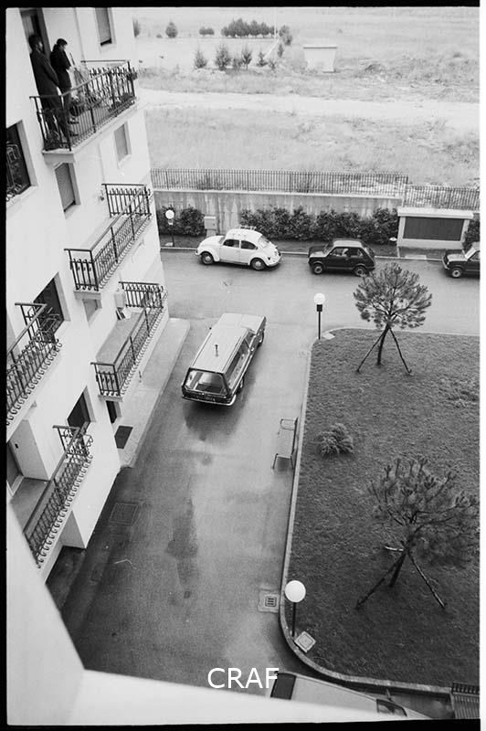 Un'autofunebre è ferma davanti al condominio "Le Rondini" nella zona nord di...