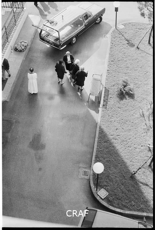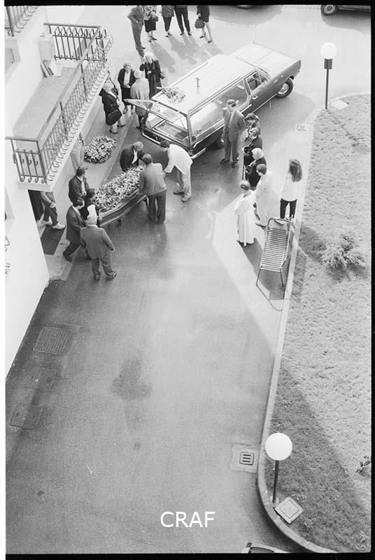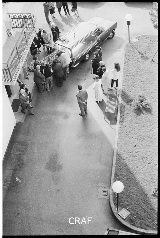Un feretro viene caricato su un'autofunebre ferma davanti al condominio "Le...