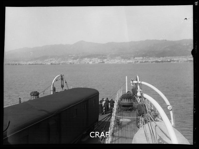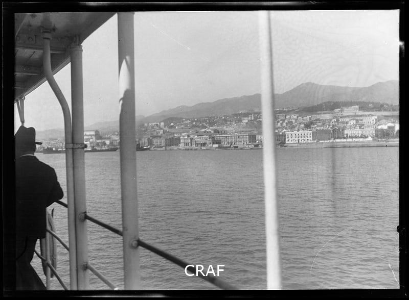 Panorama di Messina ripreso dal mare a bordo del traghetto.