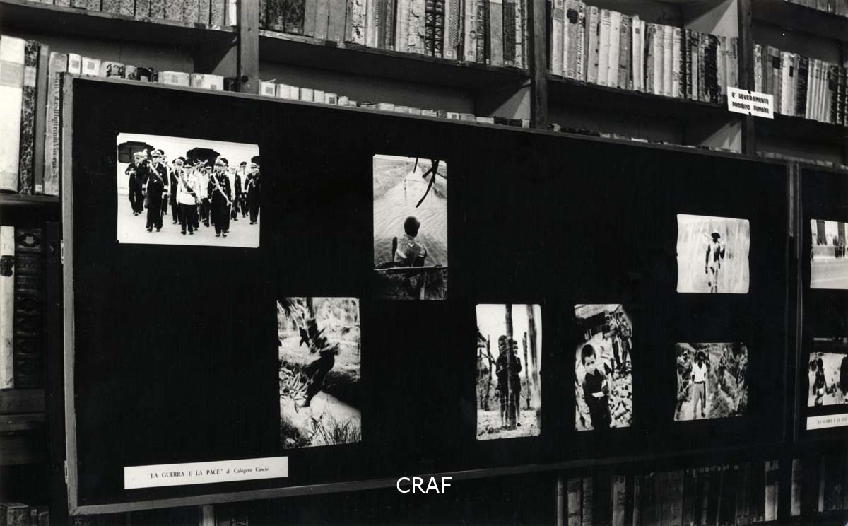 mostra, sala espositiva, pannelli, fotografie, scaffali, libri