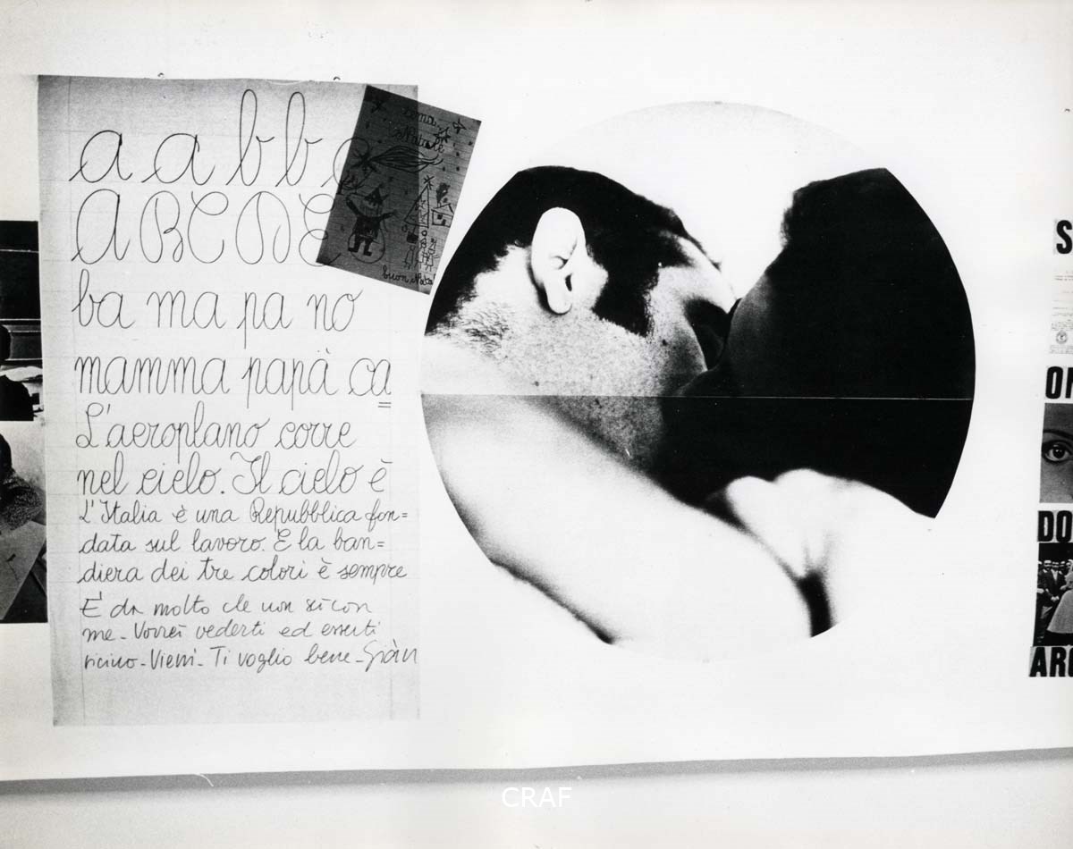 particolare, esposizione, pannello, fotografie, scritte, persone, coppia,bacio,...