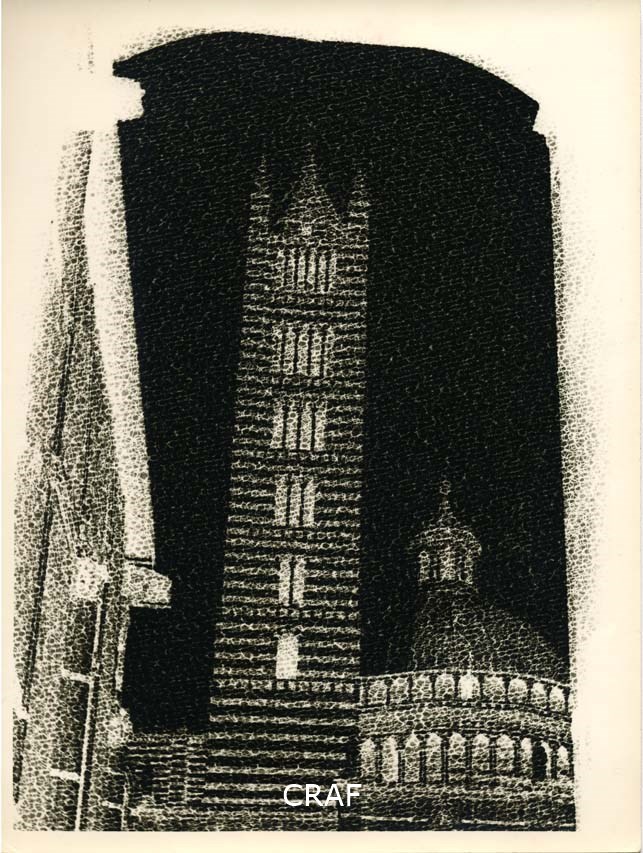 Inversione di sandwich di tela con veduta di chiesa di Siena