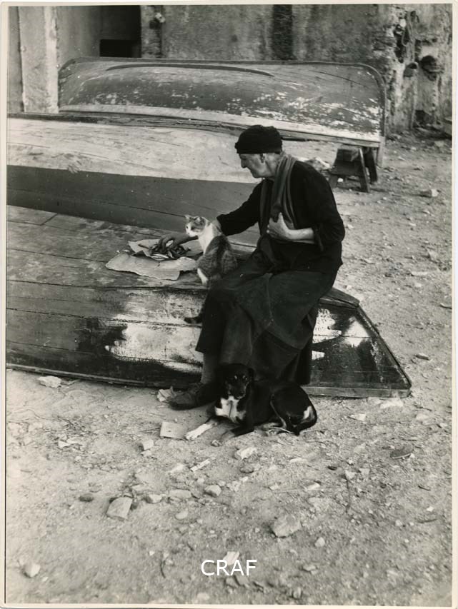 persona, donna, anziana, cane, gatto, barcche, pesce, cartoccio