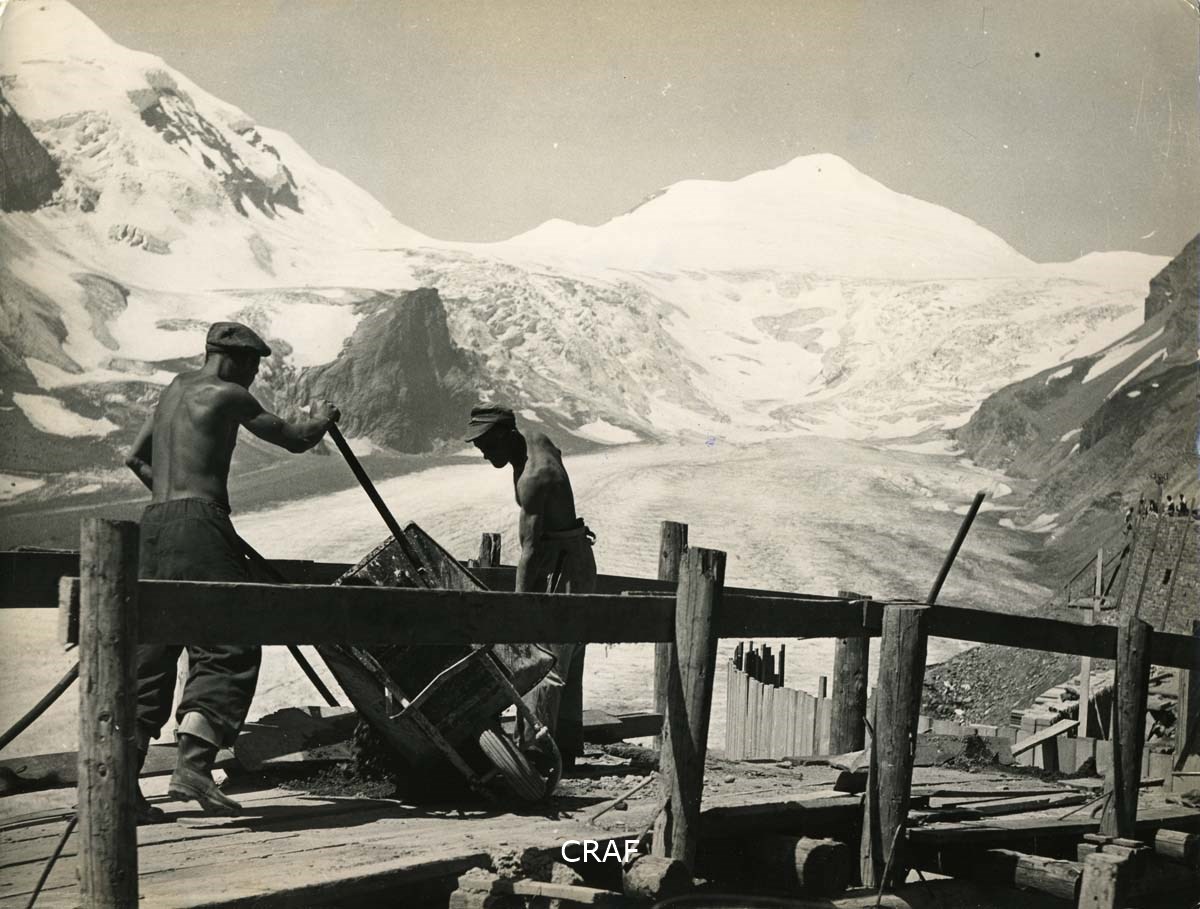 persone, uomini, ghiacciaio, cantiere, carriola
