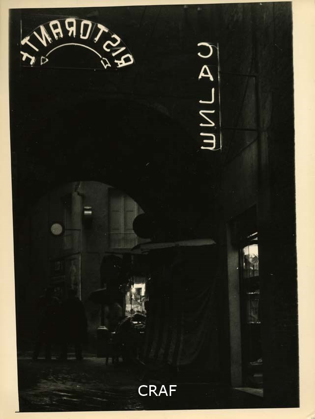 Insegne con scritte a rovescio: CALZE e RISTORANTE