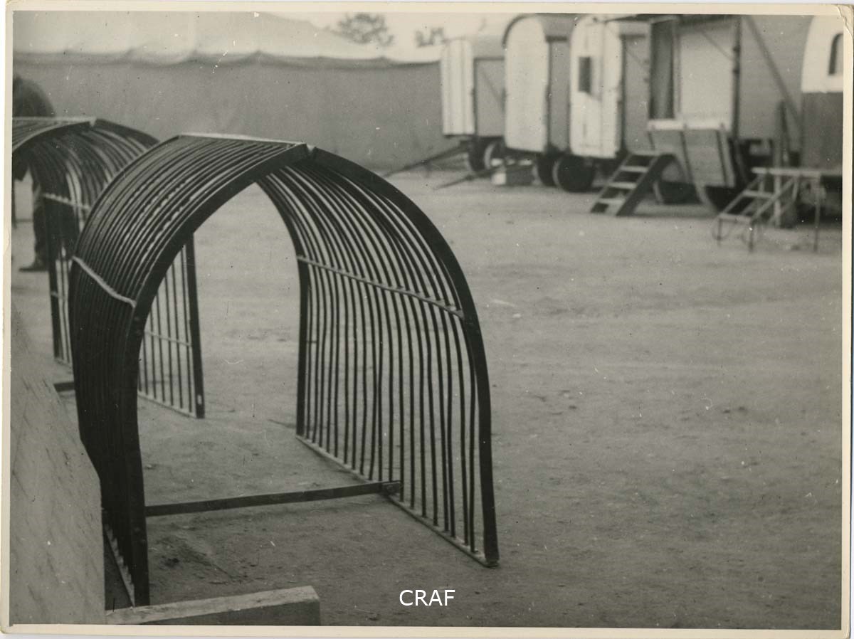 Gabbie aperte su due lati ad arco acuto e con sbarreù; scalette accostatealle...