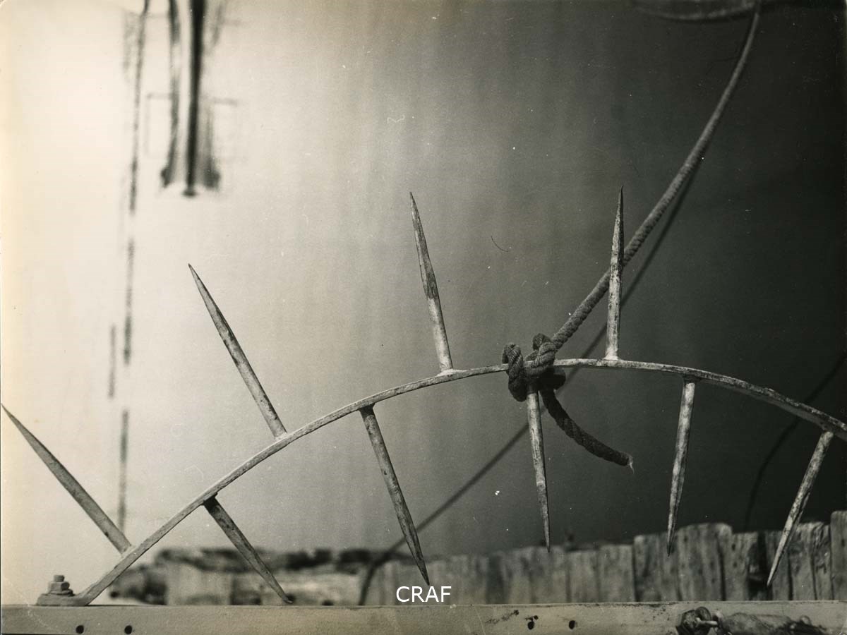 aculei appuntiti della rosta; nodo della corda; imbarcazione sfocata al largo