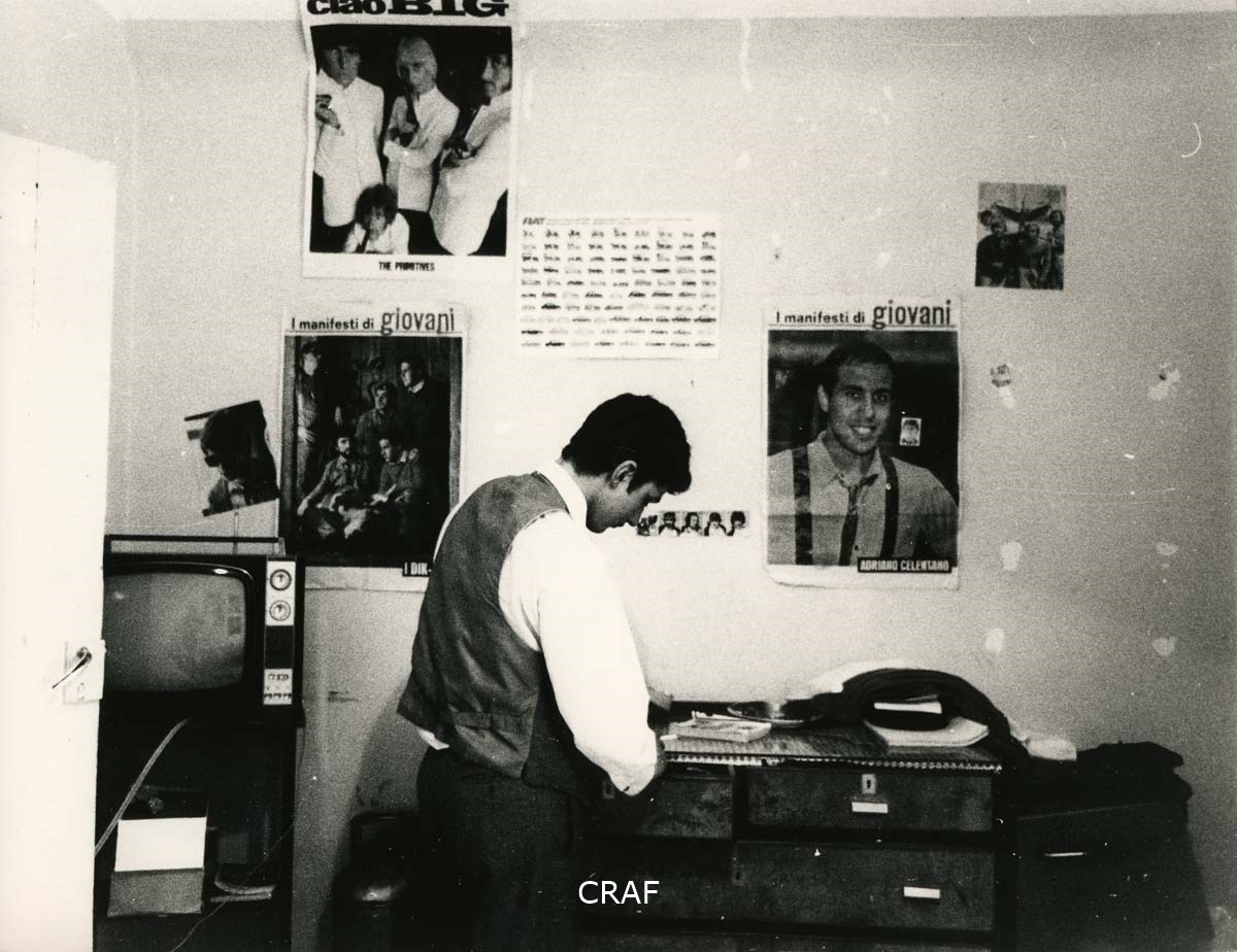 Alla parete un calendario, tre poster (1° con scritta CIAO BIG e l'immagine del...
