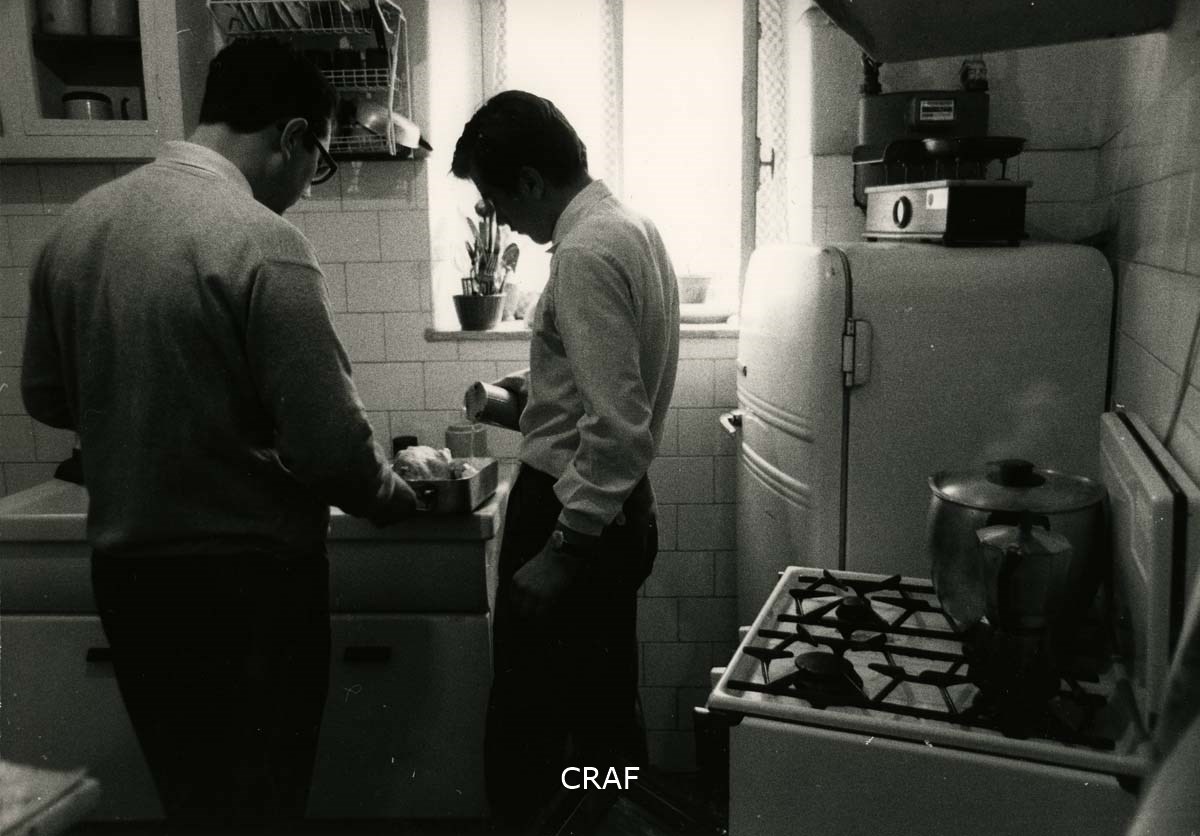 persone, cucina, tavolo, sedia, stufa, lavello, orologio