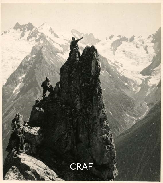 Un gruppo di alpinisti su una vetta nella zona di Tebarda (Georgia Sovietica)