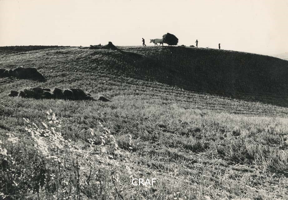 Campagna. Vallata. Prato. Carro. Carico. Paglia. Bovini. Contadini