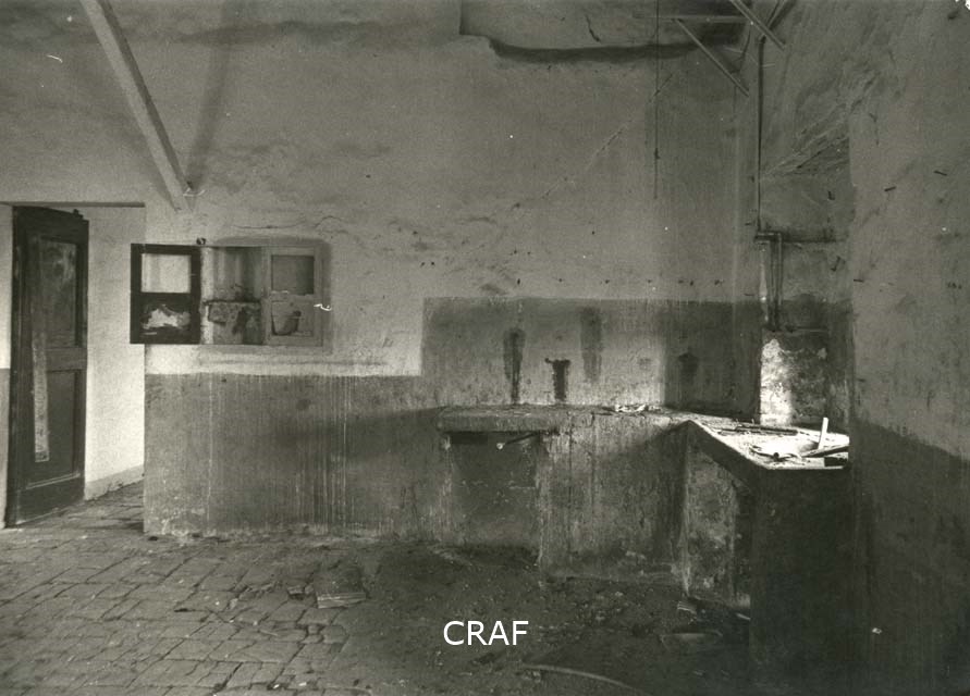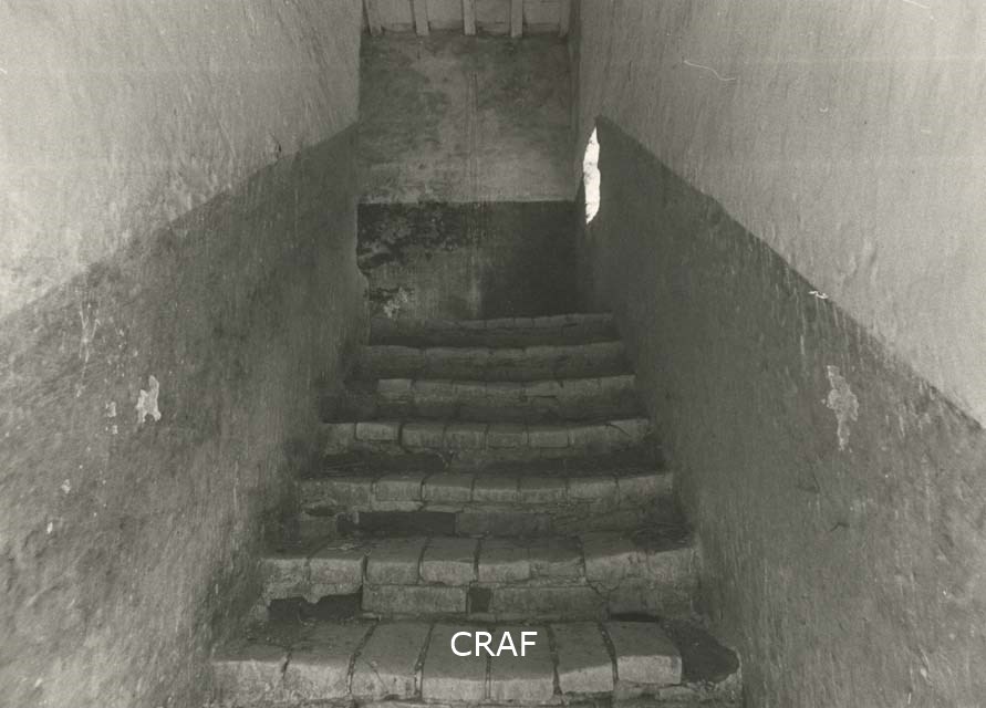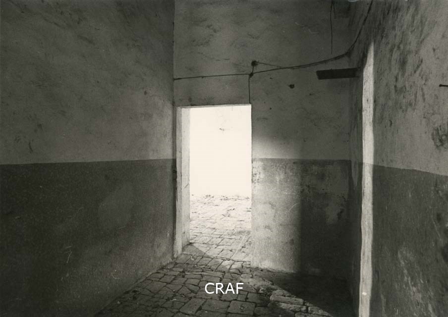La parete a destra ha pilastri di conci squadrati di pietra; in fondo...