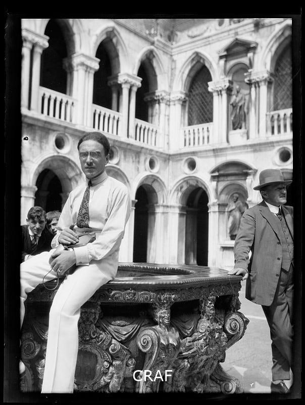 Ritratto di gruppo in Piazza San Marco, sul basamento di uno dei piloni porta...