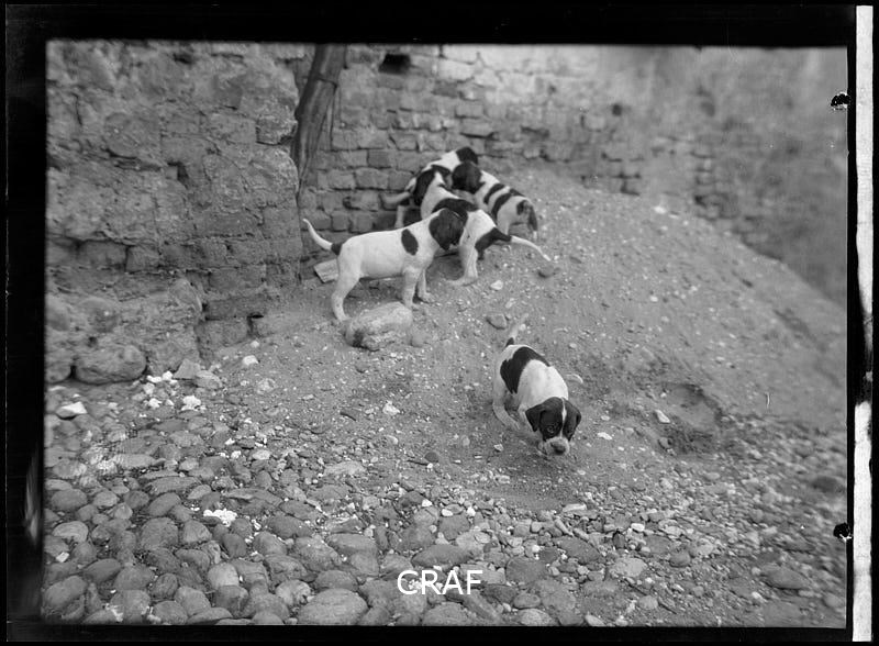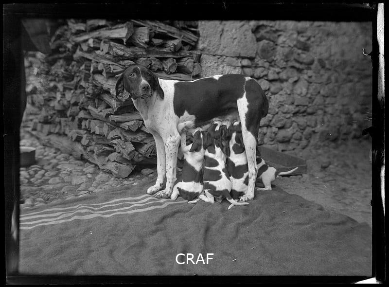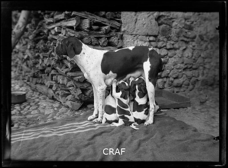 Ripresa della cucciolata di un bracco.