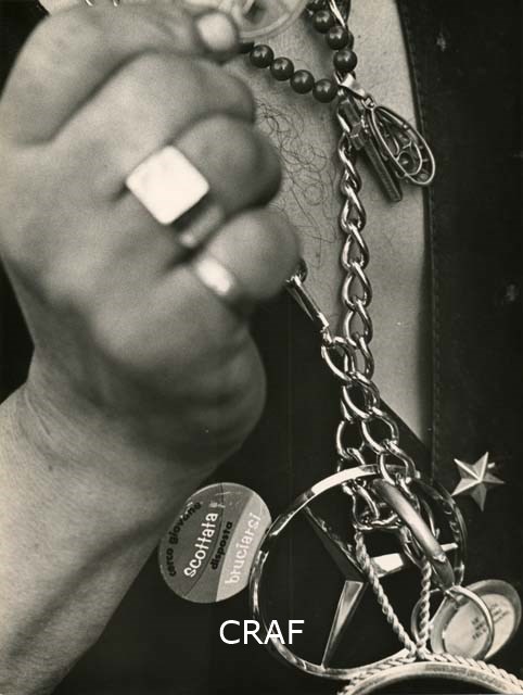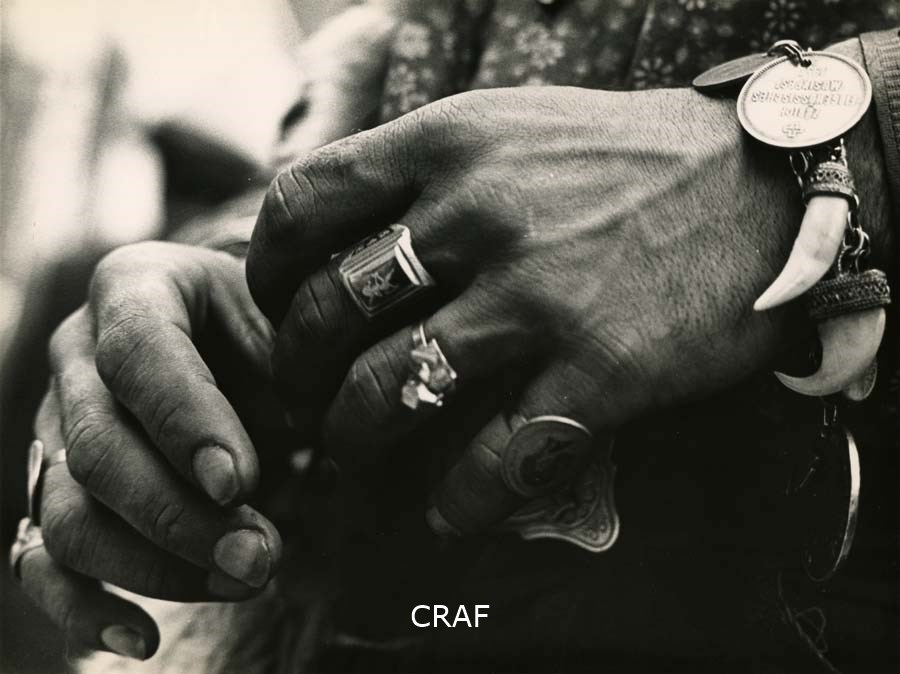 mani, anelli, bracciale, medaglie, denti di squalo