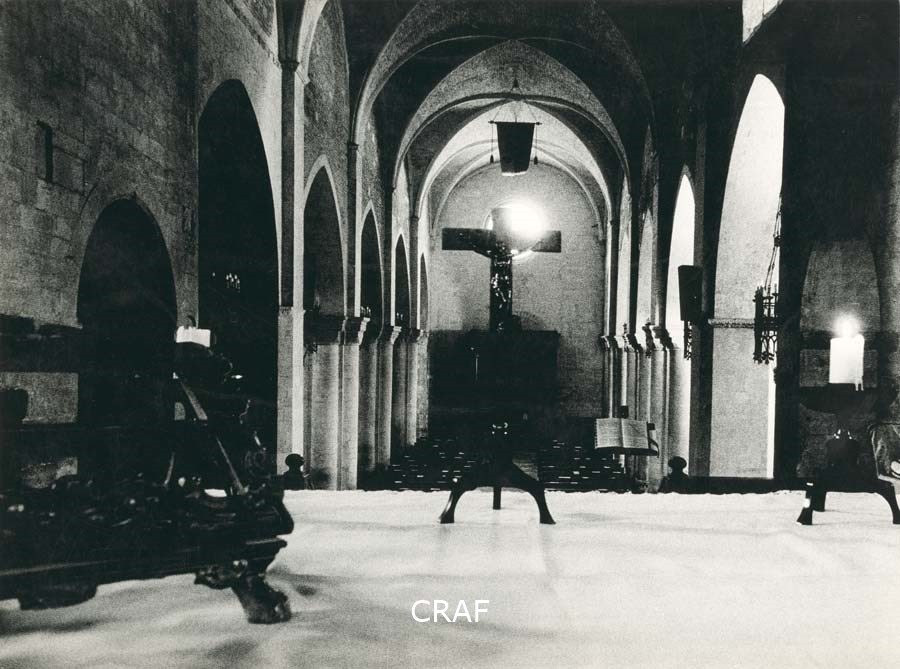 navata, volte a crocera, pilastri, crocifisso, leggi, candelabri, sedili,