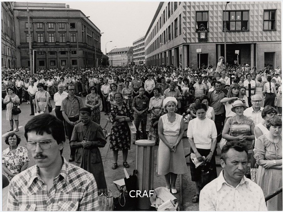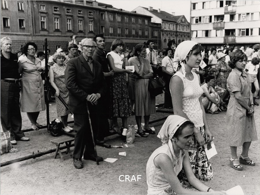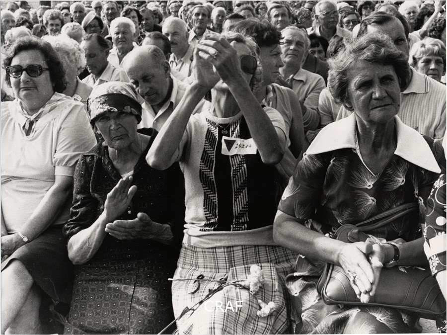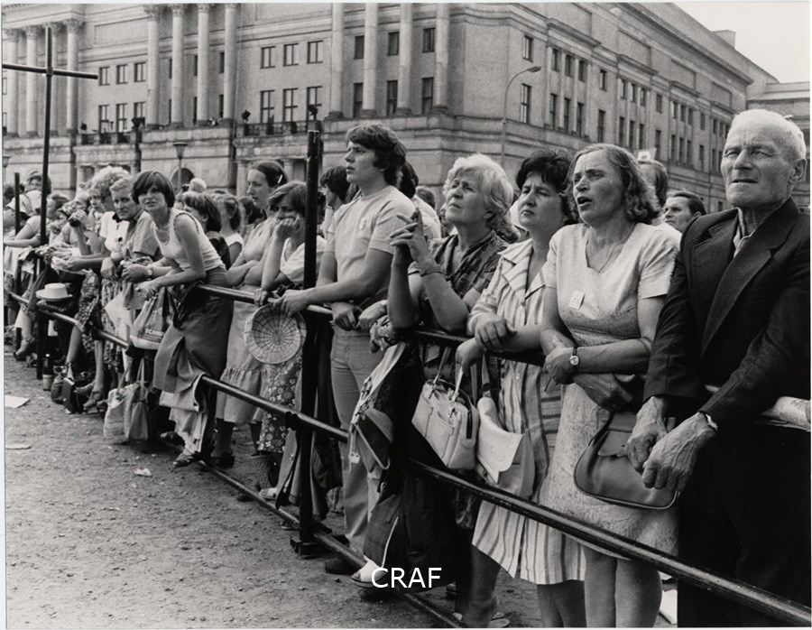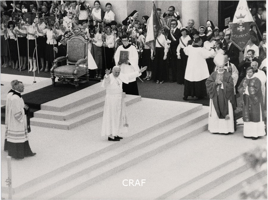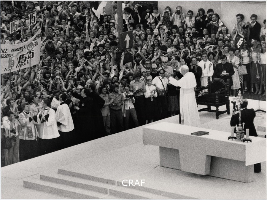 persone, uomini, donne, prelati, papa, Giovanni Paolo II, palco