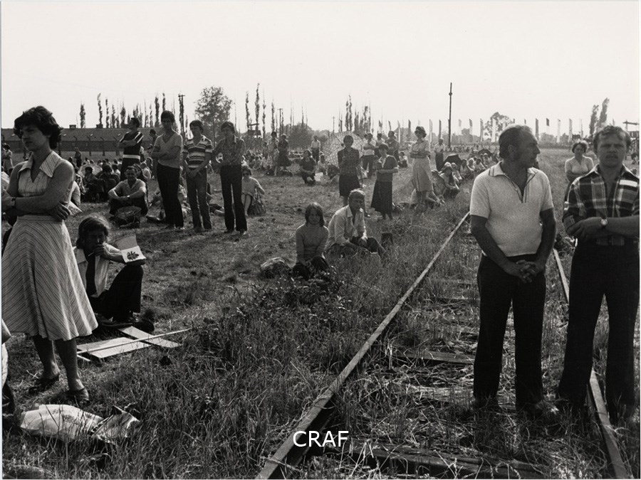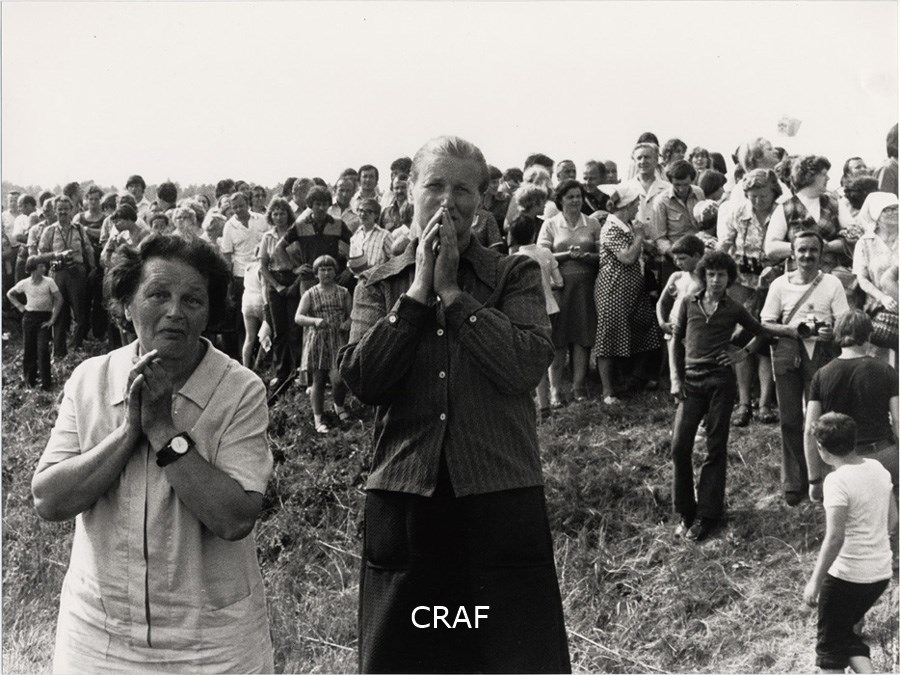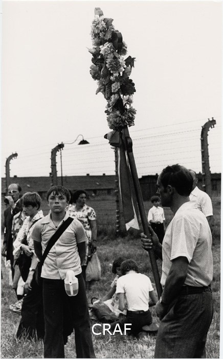 persone, uomini, donne, crocefisso, nastri, fiori, recinto, filo spinato