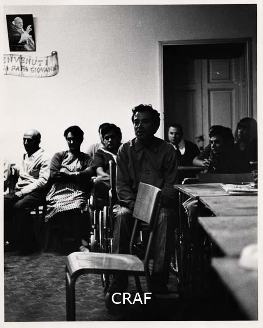 Sedia. Tavoli. Fotografia di Papa Giovanni XXIII° appesa al muro con cartiglio...