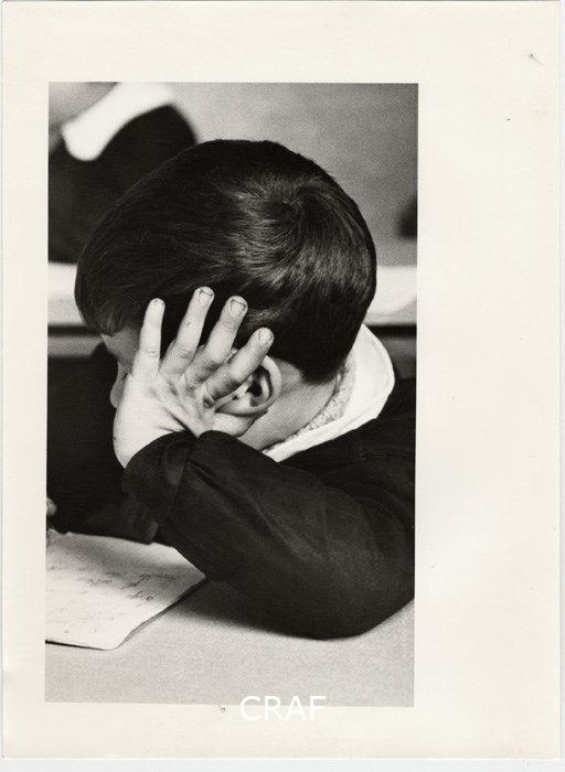 persona, bambino, scolaro, banco, testa, braccio
