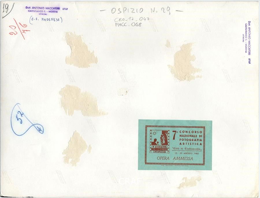 Ospizio. Interno Ritratto di donna anziana con fazzoletto sul capo e manitra le...