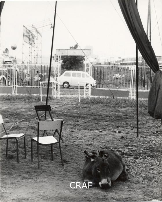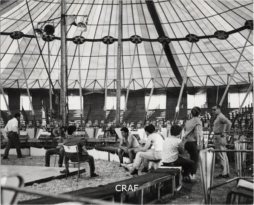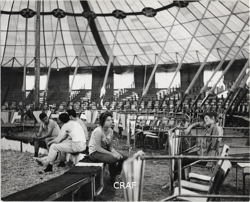 Circo. Ripresa dall'interno del tendone verso l'esterno. In primo piano adestra...