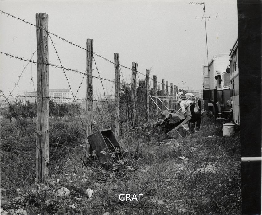 Circo. Esterno. In primo piano recinzione di filo spinato ripresa in...