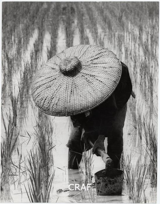 Paese asiatico? Ritratto di persona con grande cappello di paglia che affonda...