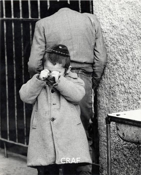 Due bambini (cancellato) ragazzi (aggiunto) all'interno di una scuola delquartiere di Mea Shearim di Gerusalemme: il grande si è voltato e il piccolo si copre gli occhi con le mani in ossequio alla legge ebraica che viet a di farsi fotografare.