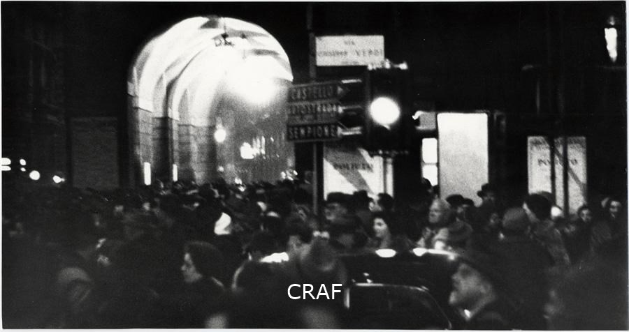 Milano. Teatro alla Scala. Atrio. Interno. Folla di pubblico.
